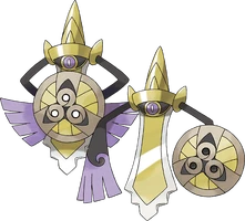 Aegislash (Japanese: ギルガルド Girugarudo) is a dual-type Steel/Ghost Pokémon, introduced in the Generation VI games, Pokémon X and Y. It is the final evolution of Honedge.