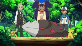 - This is the first episode where Iris's Axew is seen using moves in battle.