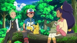 Iris and Axew have a practice battle against Cilan and Pansage. Since Cilan was a gentleman, he decided to get Pansage to use his moves lightly on Axew, sine it was Axew has never battled before. Soon, Ash tells Iris to use another move rather than Scratch and Iris tells her Axew to use Dragon Rage. Axew does what he was told but all of a sudden, the blue ball exploded in Axew's mouth. Everyone was affected by it, Iris, Cilan, Cilan's Pansage etc. exept for Axew. After learning more about Axew's current abilities and why Iris started her journey, Axew decides to pick some apples, while Ash and Cilan make fun of Axew's Dragon Rage, calling it Dragon Sneeze. However he loses his balance and falls down and gets caught between a wild Scolipede's two horns. A battle to stop Scolipede proves difficult due to the wild centipede's massive strength, so Iris tries to get her Excadrill to lend a hand despite it not listening to her. Although they manage to rescue Axew, the Scolipede is still angry and accidently kicks Excadrill away. This makes Excadrill spring into action and quickly defeats then send the Scolipede flying. Although the team is grateful for Excadrill's help, he still refuse to listen to Iris and turn back into its drill mode and is taken back to its Poké Ball. Later, Ash insists to have a battle with Iris. Iris (being sarcastic) tells Ash if he wants to battle so badly, just battle Pikachu. Ash follows her idea and battles Pikachu, which fails dramaticly.