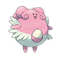 Blissey has curly hair on both sides of its head. Their arms are pink with white wings at the end. It has a patch for its egg, like all of the members of its family. Its lower torso is also white with four flaps of fur, giving it an appearance of wearing a dress.