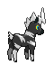 Blitzle is a small white on black zebra like Pokémon. It has a very spiky mane with a single lightning bolt-shaped cluster of hair sticking out between its small ears. Its tail is very short for a hooved mammal. It has yellow and blue eyes, and a very large black spot on its snout, probably a nose. Its small ears have blue insides.
