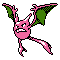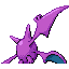 | Crobat sneaks up on its intended prey using wings that barely make a sound. This Pokémon rests by hanging on a tree branch with its rear legs that serve as wings. | |