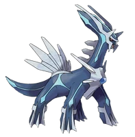 Dialga is a sauropod-like Pokémon. It's mainly dark blue with some gray metallic portions, such as its chestplate, which has a diamond in the center. It also has various light blue lines. It has a somewhat wing-like structure on its back, and a crest on its head, resembling a type of dinosaur. Dialga also has two horns on top of its head, two fang-like horns around its mouth, long claws, and a short tail.