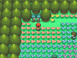 Floaroma Town is a town found in western Sinnoh that is filled with flowers. This town does not have a gym, but has a Pokémon Center, the Pick a Peck of Colors Flower Shop and a Pokémart.