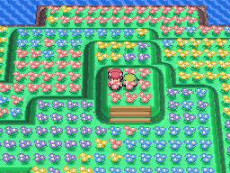 Flower Paradise is a location in Sinnoh and is the only place where players can catch Shaymin. It is only accessible when the player gets Oak's Letter, which in turn is obtained through a Nintendo Event or Mystery Gift. It is found at the end of Route 224 near the "mirror rock". Before players get to Flower Paradise, they must answer a question Professor Oak asks them. After answering the question, the desolate area the player was on then flourishes with flowers and a pathway is opened. When the player follows that pathway, they will finally see Flower Paradise and Shaymin at the end of it. Once you have opened up the Seabreak Path, you will be able to return to Flower Paradise whenever you want.