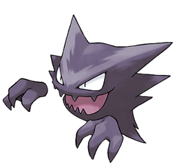 This Pokémon takes the shape of a sinister looking, angular floating face with fangs, and it has disembodied, clawed hands. When approached by people, it has a habit of reverting to a spherical form that obscures its eyes, mouth, and hands Haunter also likes to transform into solid things just to scare people. If you are sleeping or unconscious, Haunter can grab you and turn you into a ghost. But don't worry; it can return you into your body afterwards.