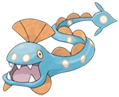 | Huntail's presence went unnoticed by people for a long time because it lives at extreme depths in the sea. This Pokémon's eyes can see clearly even in the murky dark depths of the ocean. | |