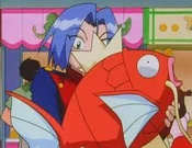 James bought Gyarados when he was still a Magikarp from the Magikarp Salesman when he was aboard the S.S. Anne. When James threw Magikarp into the ocean, he evolved into Gyarados. Eventually, he used Dragon Rage hurling Ash, Misty, Brock, and Team Rocket away and he was never seen again.