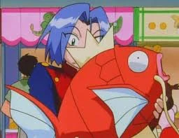 In the anime, he is a common member of Team Rocket and in many ways, is the anime representation of the Male Agent During his adventures in trying to capture Pikachu, James is part of a unit made up of himself, Jessie, and Meowth. Although born into a rich family with loving parents, he runs away from home to avoid Jessebelle to whom he was supposed to marry later on. With a very caring and thoughtful personality, James can sometimes have a hard time dealing with the "rotten things" he and his team mates do from various times to get what they want, but in the end he fulfill his obligations with less-admirable results, he also gives out information on Pokémon whenever Meowth cannot do it himself via Index cards. James is also a bottle cap collector as well. In a flashback that James was having it was about a man that cheated him into buying a Magikarp. The same guy appeared in "All aboard the St. Anne and the one when Jessie gets a Wobbuffet.
