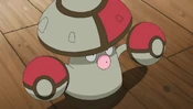 James' Inkay was first seen steeling the food that Team Rocket was trying to enjoy, namely it was steeling James' food. While at first they were unaware of the theft, they later saw it steeling James' food yet again. This gave James the anger to catch it, but ironically he used the rest of their food as bait. When he through two sandwiches towards Inkay, it caught them and it was then that James through a Poké Ball at it and successfully caught Inkay. Inkay is generally seen floating in the air upside down, even during fights. Its known moves are Tackle, Psybeam, and Foul Play.