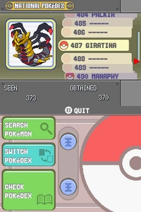 The National Pokédex in Pokémon Platinum.
