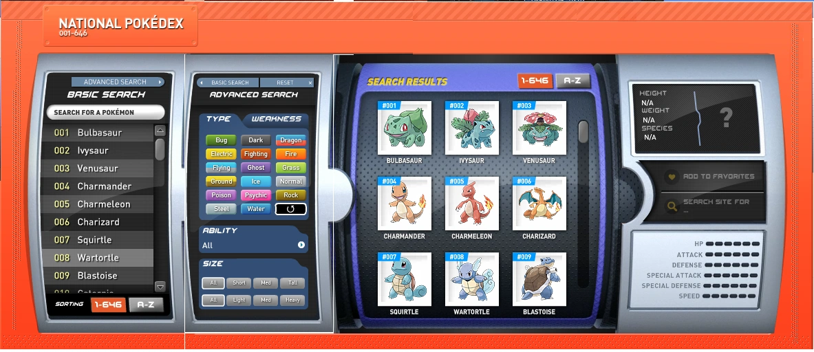 The artwork of the National Pokédex on http://www.pokemon.com/