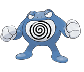 Poliwrath appears to have a blue round shaped body with a white belly and a black spiral on it. It also appears to have white fists and its pupil grow smaller than its pre-evolutions.