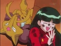 After making a trip to Lavender Town and befriending a Haunter, Ash again challenged Sabrina in the episode "Haunter Versus Kadabra". The Haunter he needed to help him was often disappearing at critical moments, causing a loss again to Sabrina and Brock and Misty being turned into dolls. There they met Sabrina's mother, who had also been transformed into a doll.