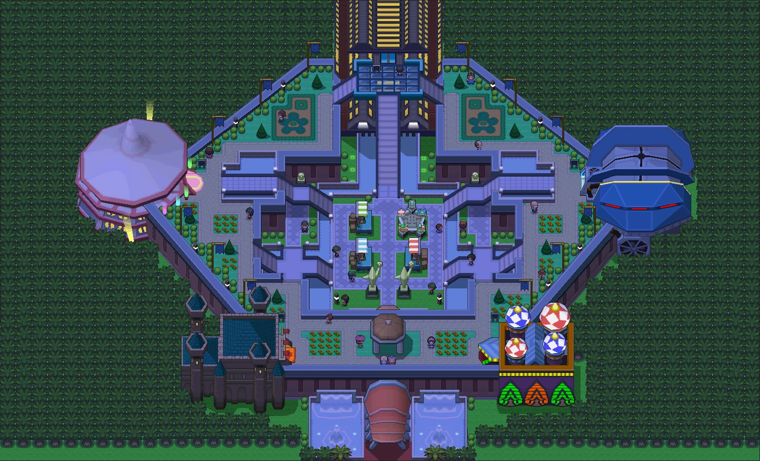 The Battle Castle is a facility featured in the new Battle Frontier, and is situated in the south-western corner. In the Battle Castle, the player must fight 7 trainers in a row, with the prerequisite being that all hold items must be removed prior to entry. Trainers are also limited to using only 3 Pokémon, all of which have had their levels reduced to level 50.