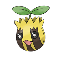 Sunkern are small, seed-like Pokémon that resembles a sunflower seed. They have black, oval shaped eyes with a sprout coming out the of their yellow/black bodies.