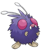 Venonat is covered with fluffy purple fur. Its feet are brown and are about half as long as Venonat itself. Venonat have two white antennae that stick out of their head. The most notable feature of Venonat is their large red eyes. It also has a small nose just under its eyes.